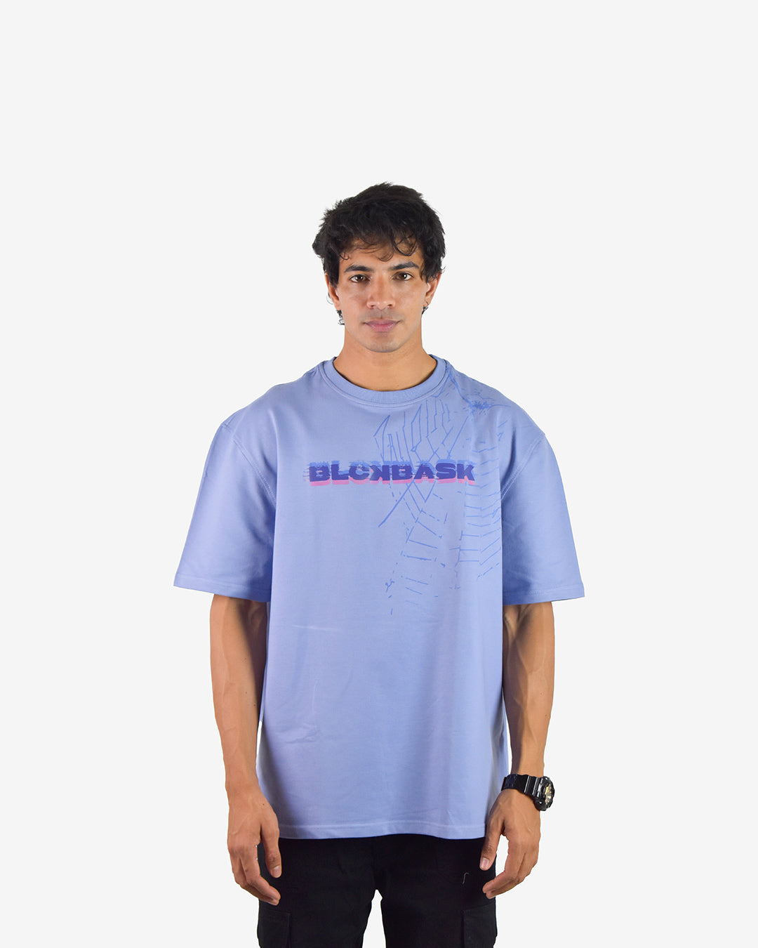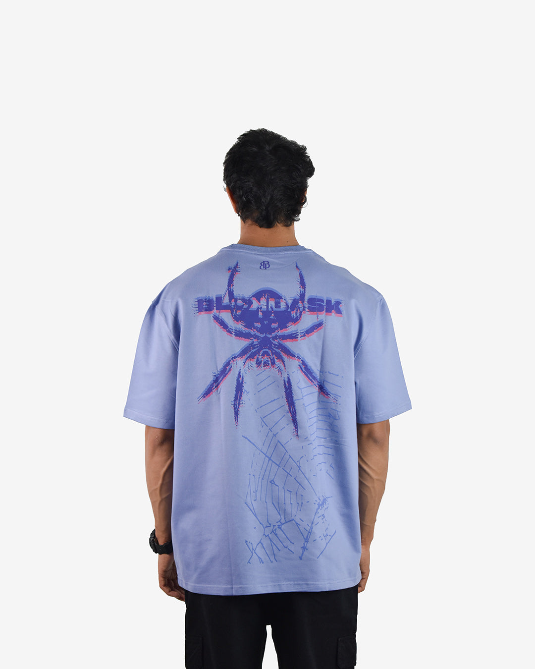 Introducing the Ice Blue T-Shirt featuring dynamic spider and web graphics in a captivating three-color layered print.